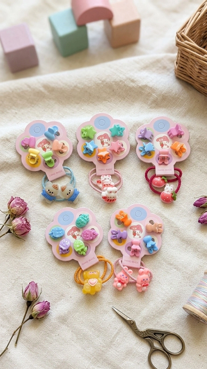 Kız Figürlü Vakumlu Kutulu 5'li Toka Seti