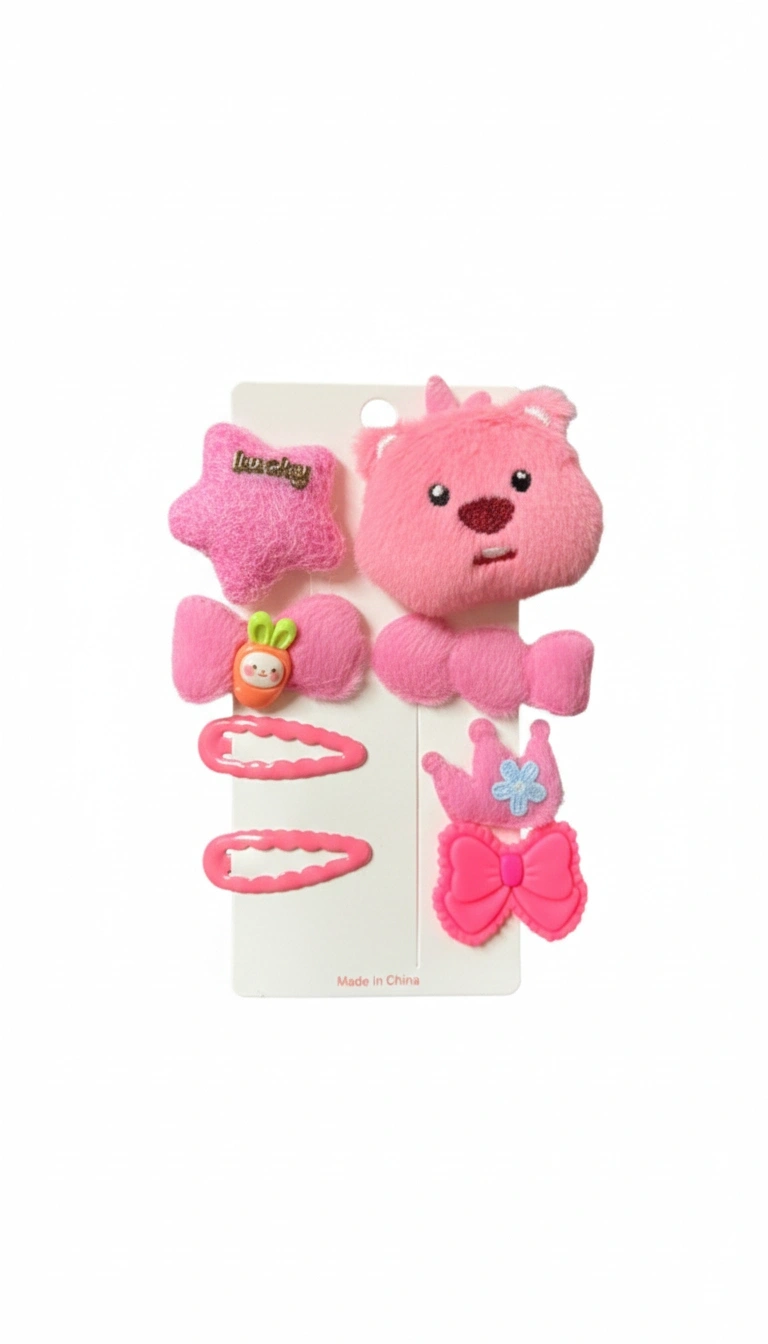 Ayıcıklı Fuşya Renk Peluş Toka Seti
