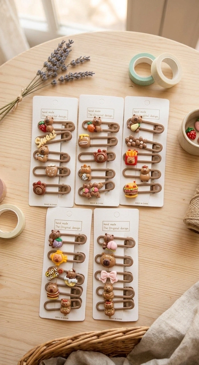 Kız Figürlü Vakumlu Kutulu 5'li Toka Seti