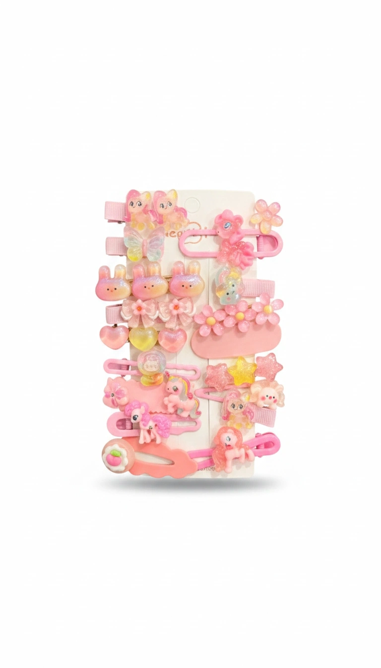 Pembe Peluş Karışık Toka Seti