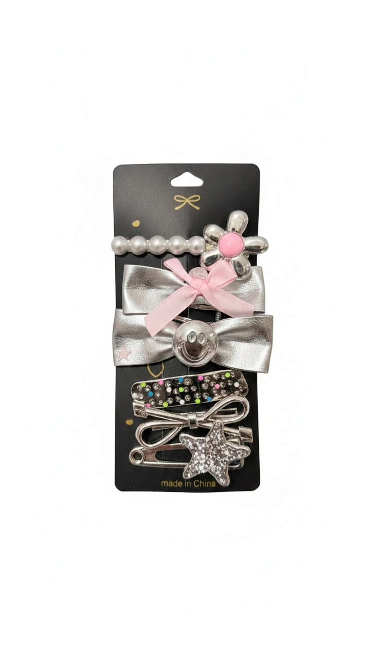 Bu kız çocuk toka seti, metal klips tasarımıyla günlük kullanım ve özel günler için şık bir saç aksesuarı seçeneği sunar.