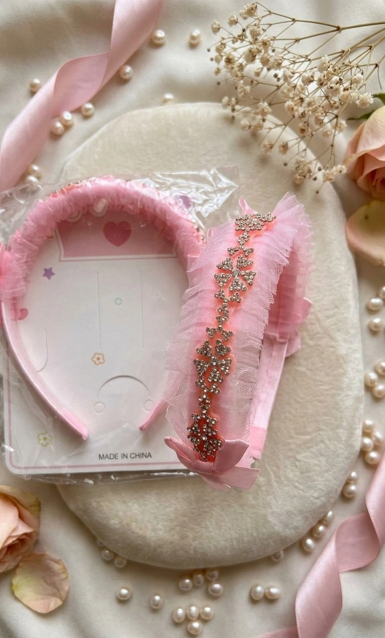 Simli Örgülü Prenses Tacı Çocuk Saç Aksesuarı (IŞIKLI) pembe renk