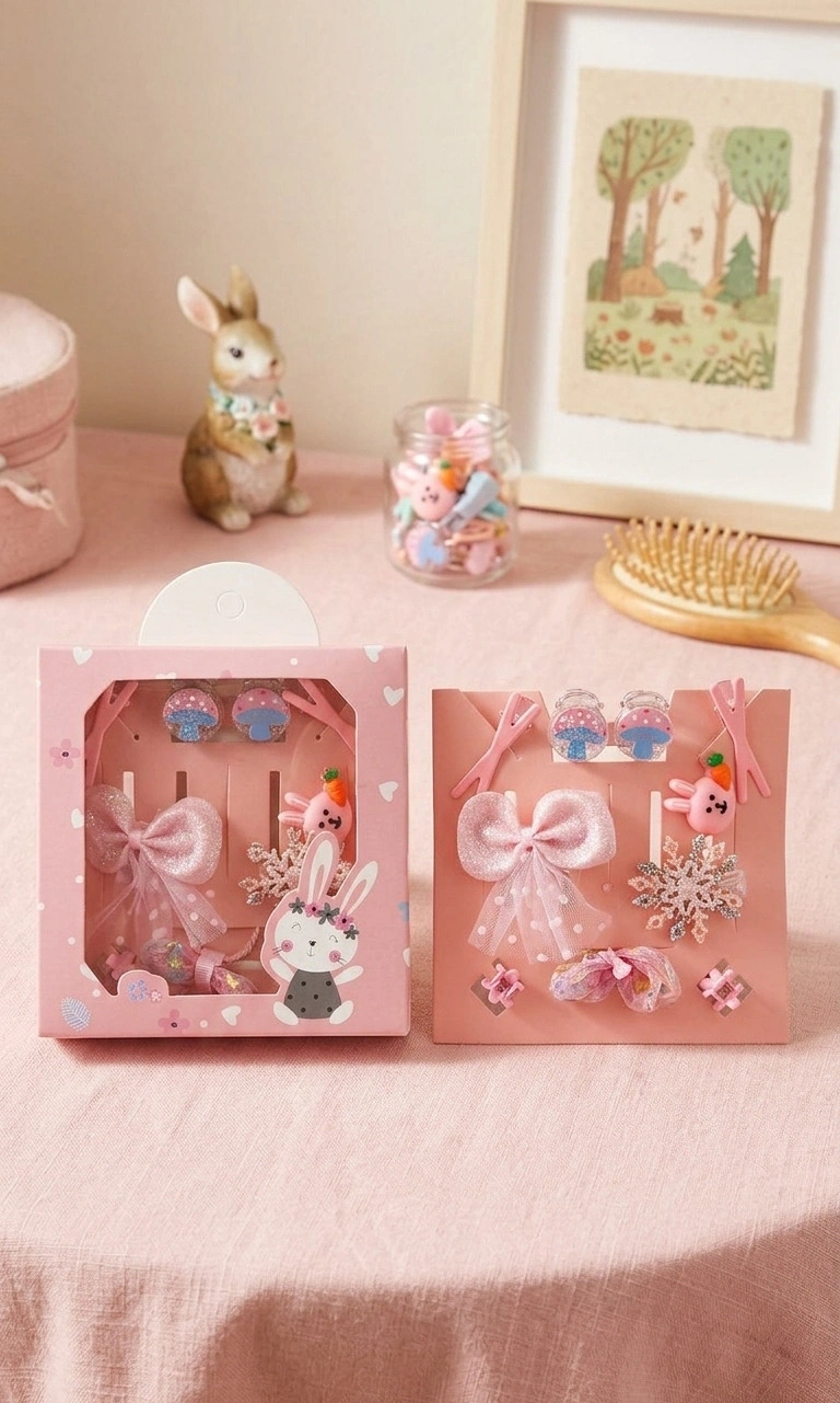 Kız Figürlü Vakumlu Kutulu 5'li Toka Seti
