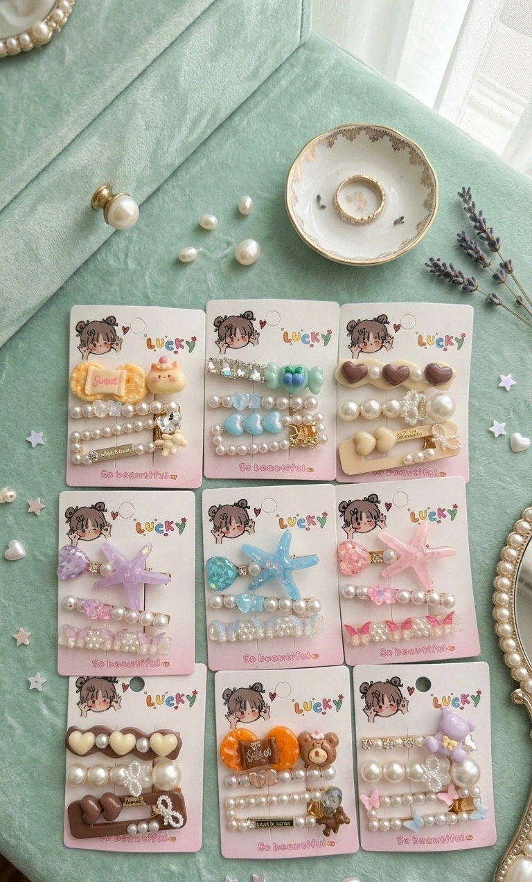 Kız Figürlü Vakumlu Kutulu 5'li Toka Seti