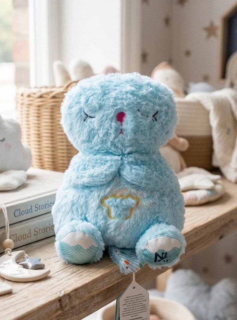 Bej Renk Ayıcık Kulaklıksı Nefes Alan Bebek Oyuncak
