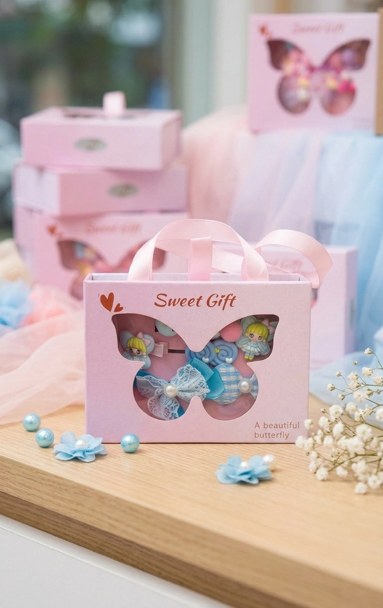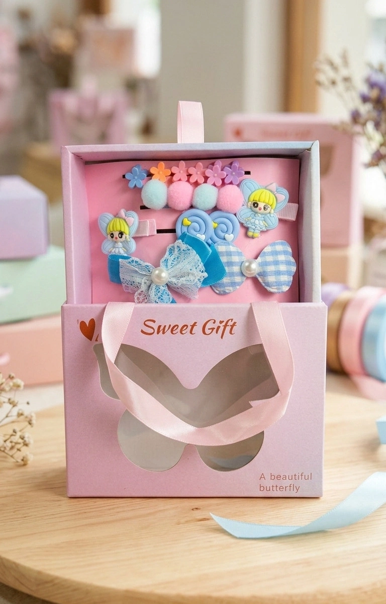 Kız Figürlü Vakumlu Kutulu 5'li Toka Seti