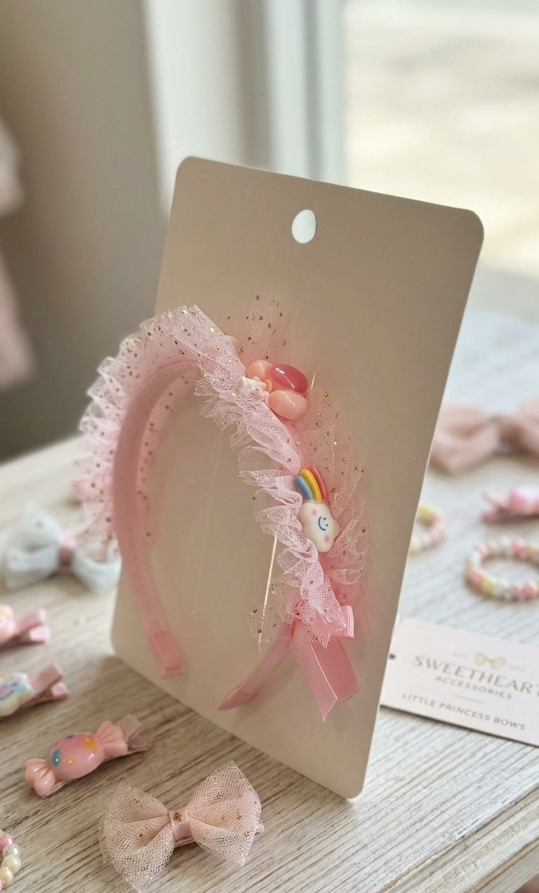 Pembe Renk Tüllü Çocuk Tacı