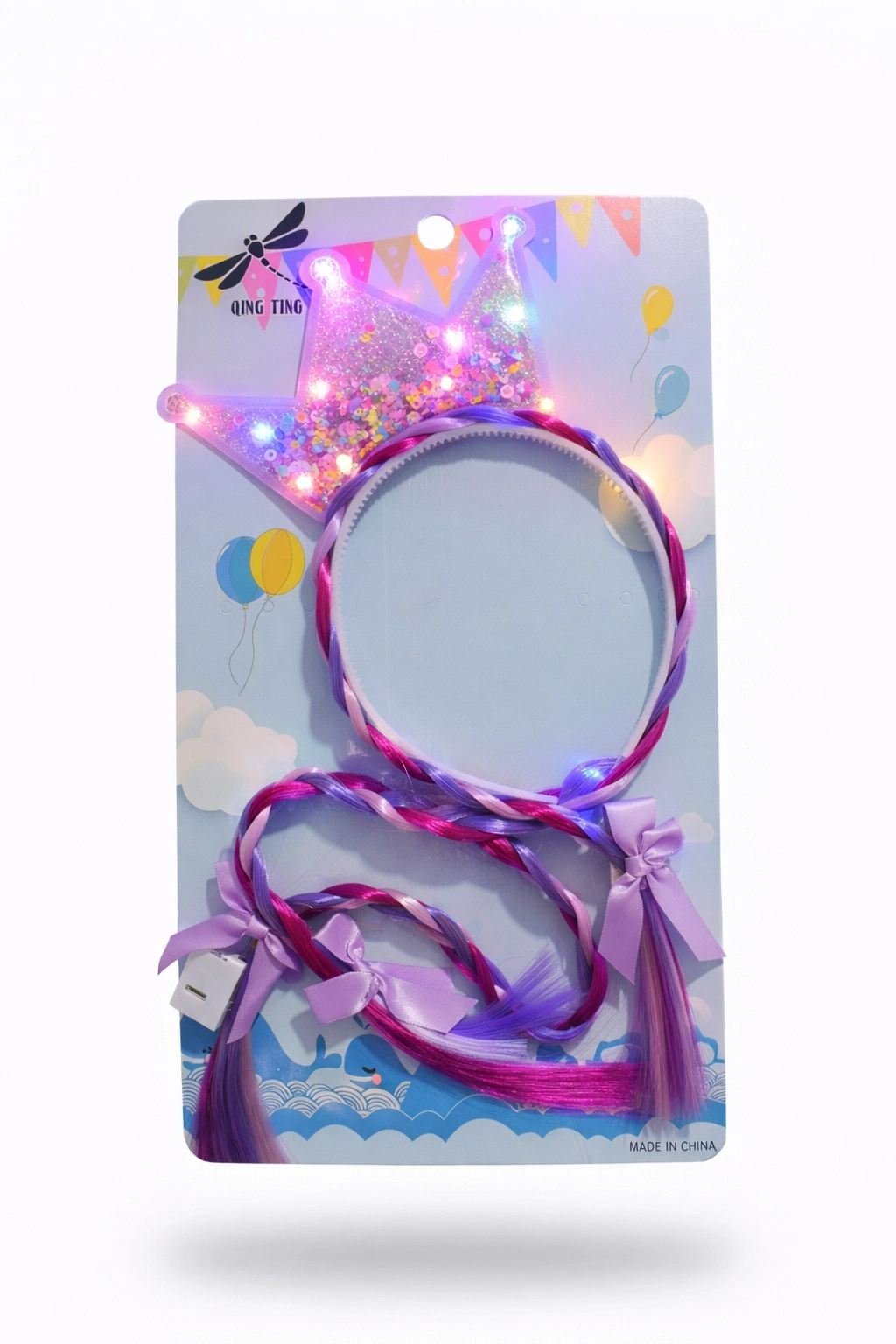 Upuzun Örgü Saçlar: Mor ve pembe tonlarındaki rengarenk örgüsüyle masalsı bir görünüm sağlar.